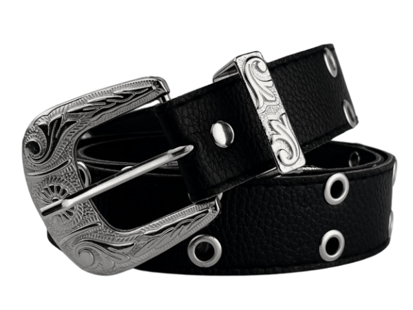 105cm Cinto Texano con Doble Ojalillo Ecocuero Negro