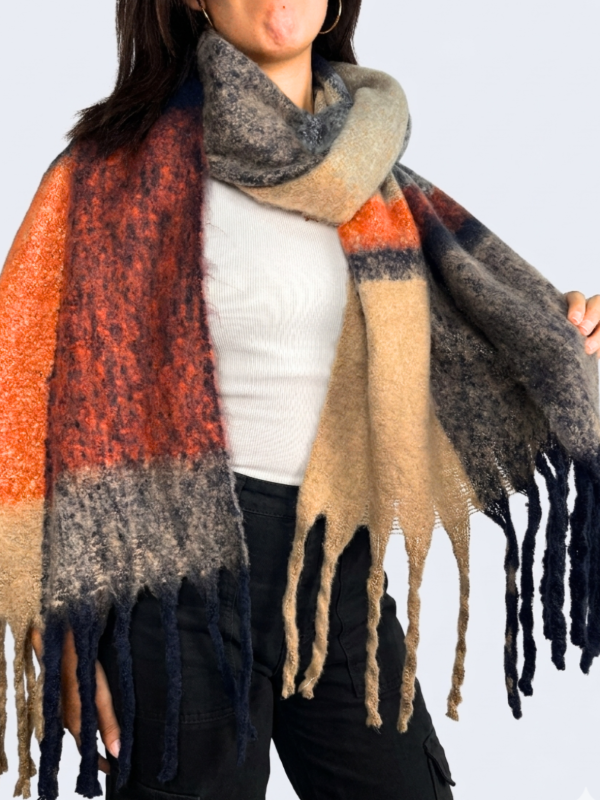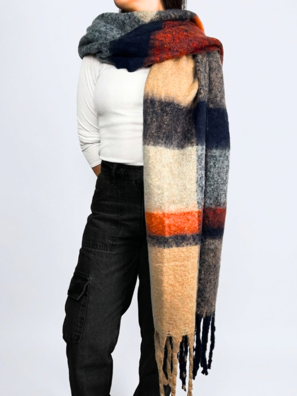 Bufandon Nube Estampado Gris/Azul/Naranja