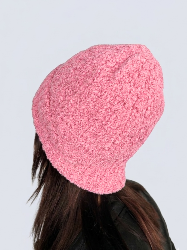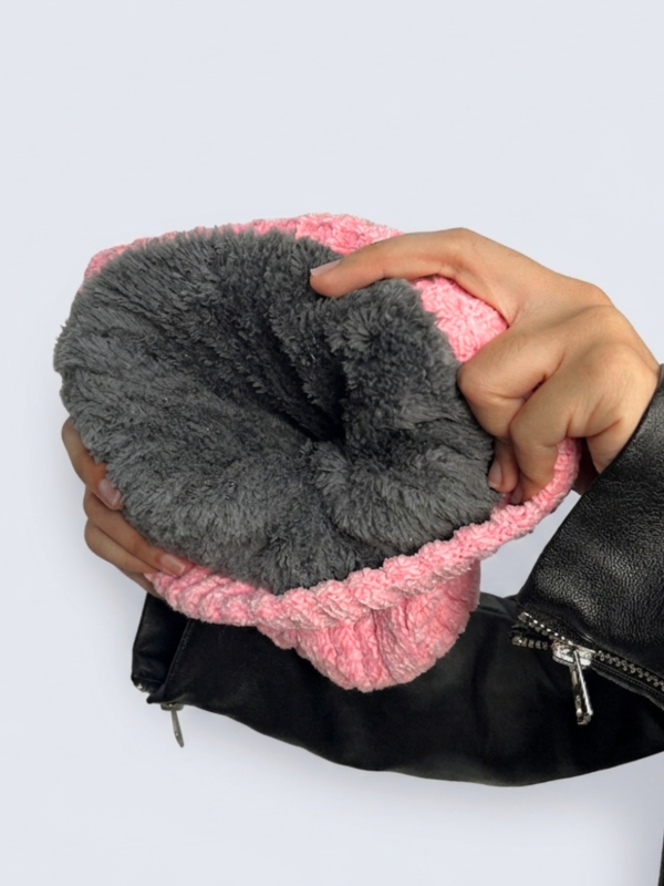 Gorro de Lana con Peluche Rosa